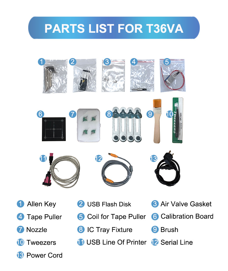 Drive System | X&Y-axis driven by stepping motors in the way of closed-loop control realized by encoder; Z-axis capable of reset detection;all motors adopting flexible S-curve acceleration and deceleration; tape puller automatic reset supported |